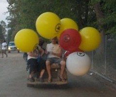 Starr Hill baloonsIcyRoo has a crew of over 30 to handle the ice and water needs of people running Bonnaroo. 6 carts and a full size truck running around 24hrs a day, over every inch of the festival during the weekend.  Centeroo, Bumble-Roo (campgrounds), VIP, Super VIP, Backstage, On Stage, Guest camping, Toll-Booths… there is no place we don’t go.  We have to weave our way through the masses, using our modified squeaky horns to get the patrons attention.  What if every time the patrons turned to acknowledge us, they spun to face two people in a cart wearing your company’s apparel?  Branded shirts on our bodies, hats/visors on our heads, and handkerchiefs covering our faces from the dust.  When we’re not working, we’re just like patrons, out and about seeing music at the different spots.